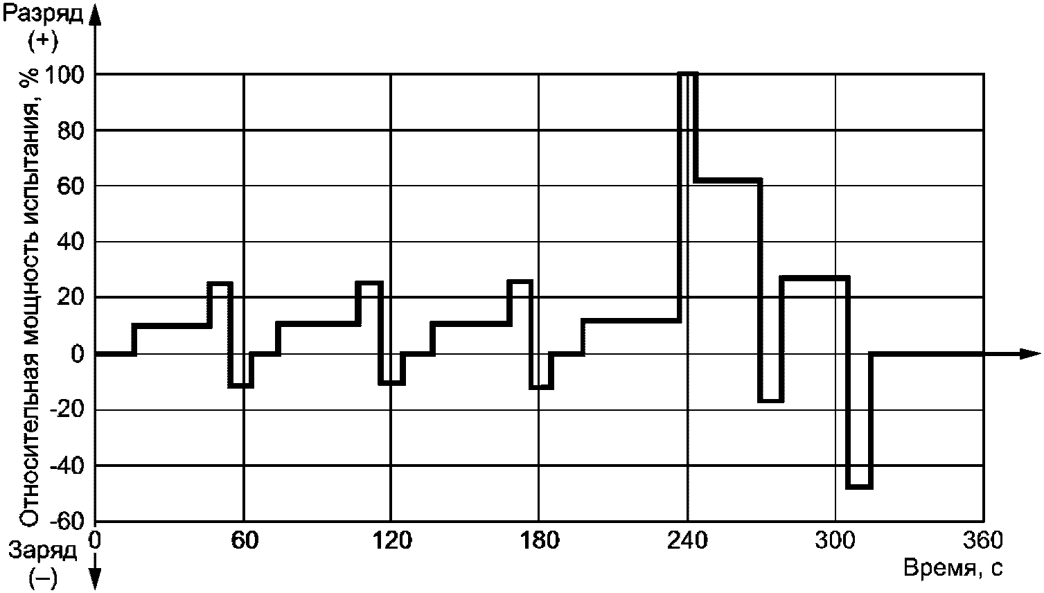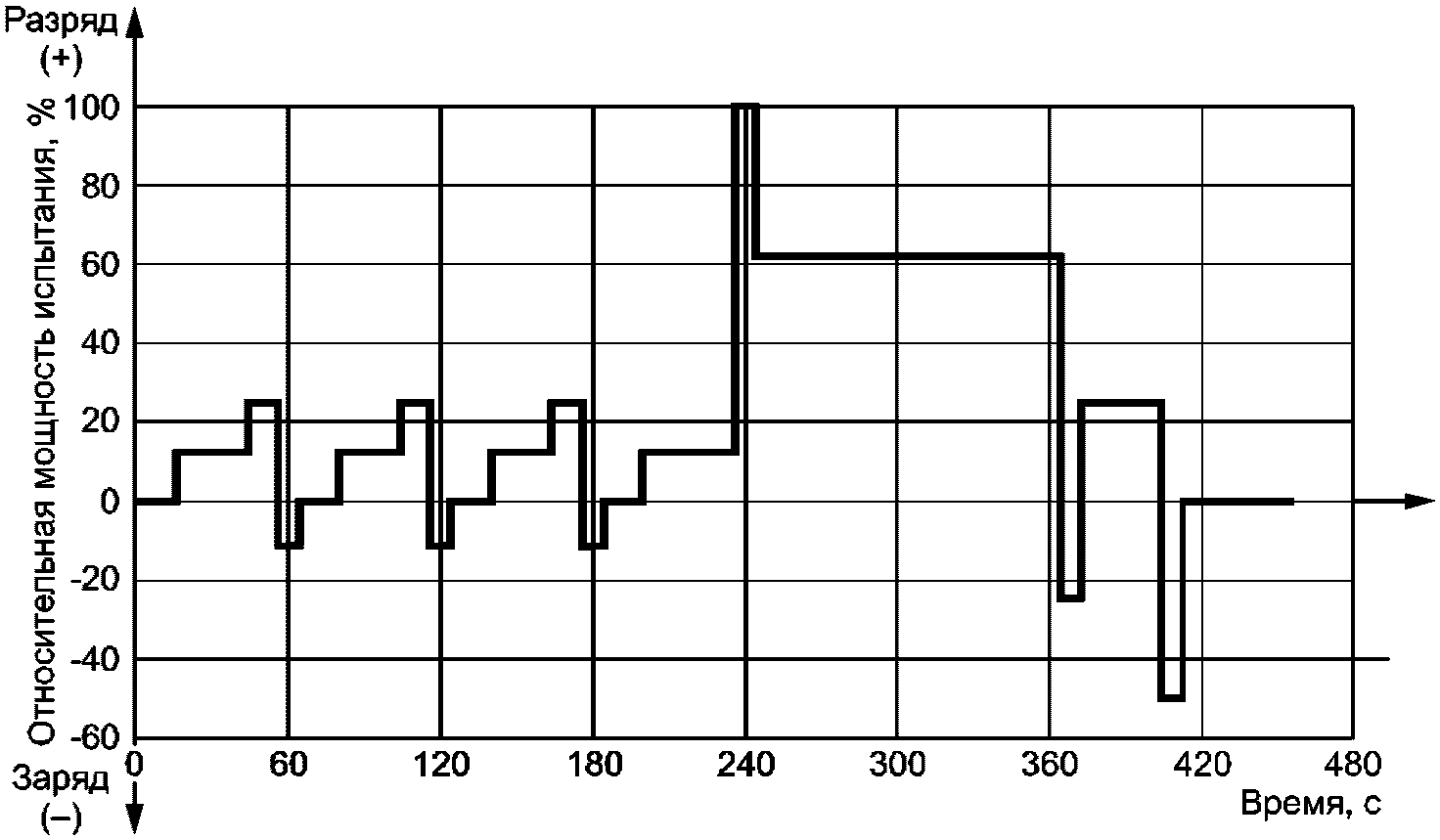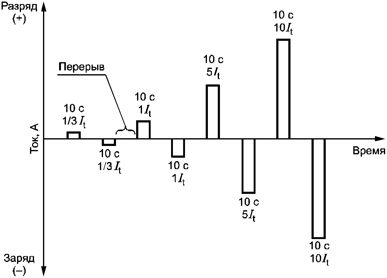 таблице C.1. Диапазон значений токов заряда и разряда должен быть указан изготовителем аккумуляторов, стандартное время измерения составляет 1 с. Если напряжение через 10 с выходит за пределы конечного напряжения разряда или конечного напряжения заряда, то данные измерений должны быть пропущены.
