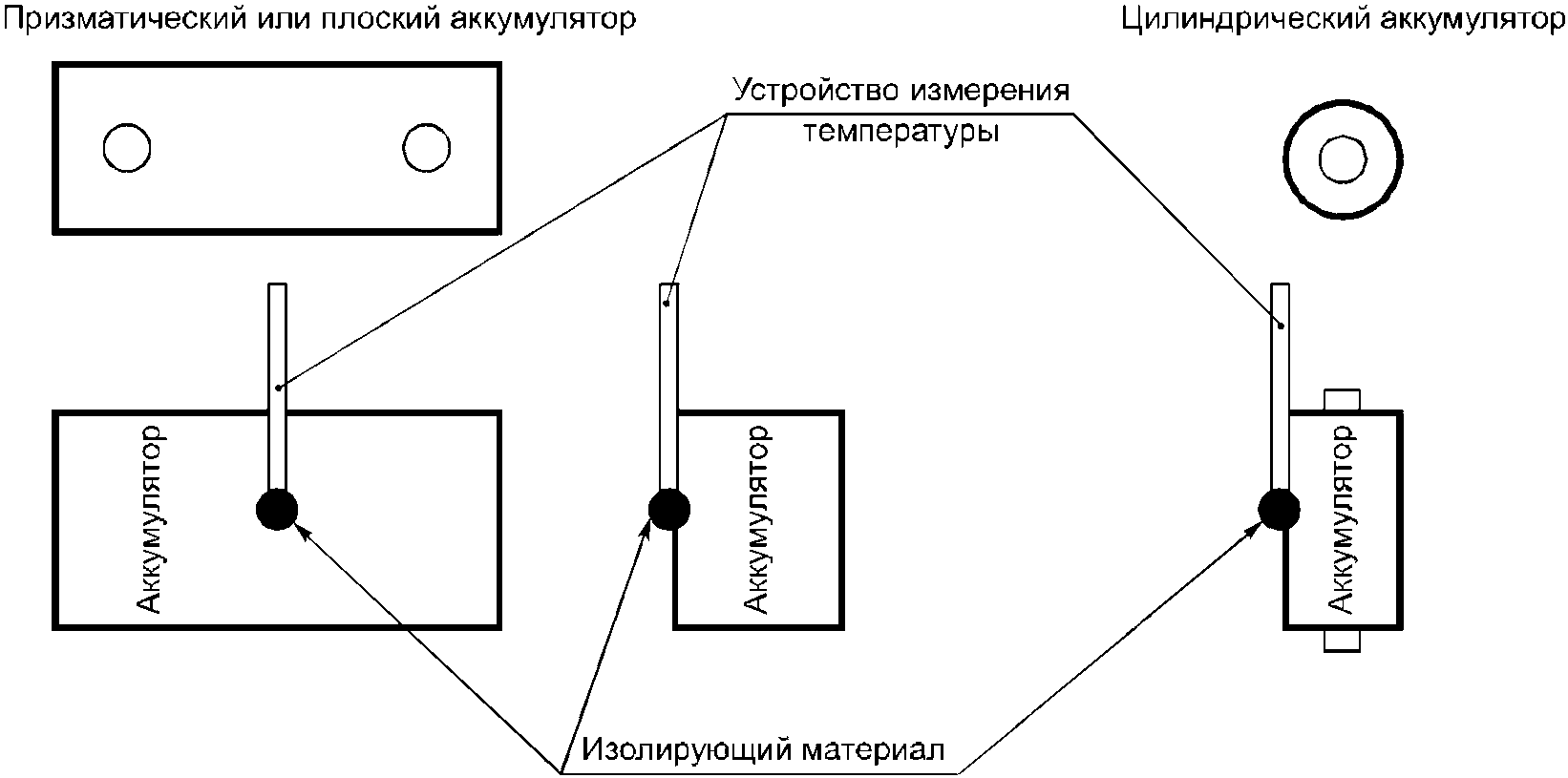 4.2.1. Температуру следует измерять в месте, которое наиболее точно отражает температуру аккумулятора. При необходимости температура может быть дополнительно измерена в других местах.