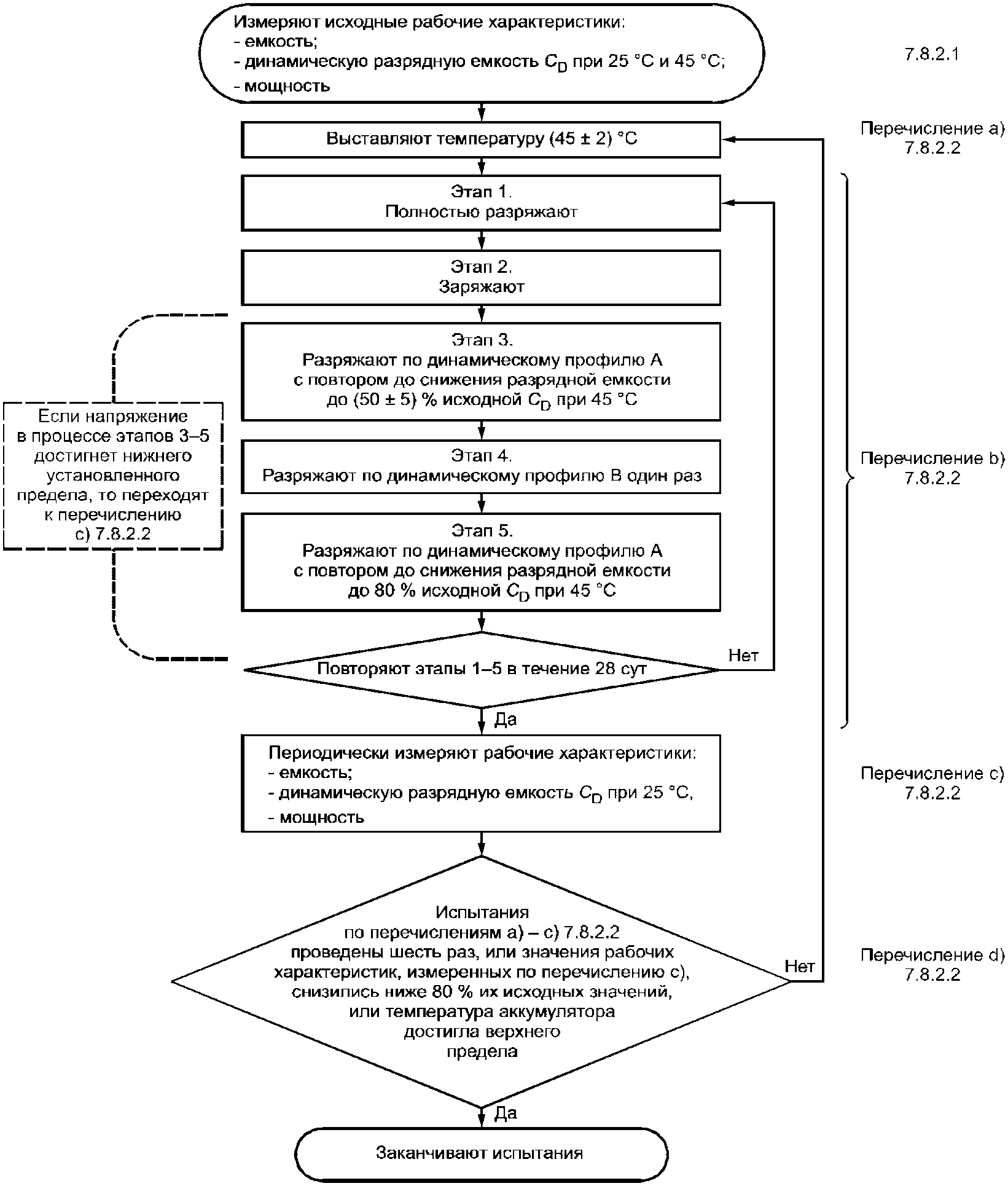 B.2. Последовательность испытаний для аккумуляторов ЭМГ показана в