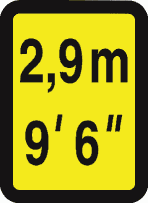 Знаки высоты контейнера высотой более 2,6 м (8 футов 6 дюймов) содержат группы черных цифр на желтом фоне, обведенные черной рамкой