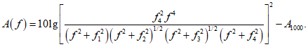 Д.3.1 Значение характеристики A(f) частотной коррекции A, в децибелах, вычисляют по формуле