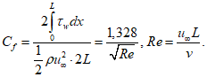 - полная сила сопротивления трения пластины длиной L, обтекаемой с двух сторон: