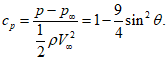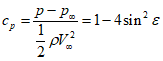 - распределение коэффициента давления по поверхности сферы: