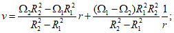 - составляющая скорости v в окружном направлении в зависимости от радиуса r: