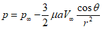 При сопоставлении результатов численного моделирования с представленным решением надо учитывать, что рассматриваемое аналитическое решение по отношению к реальным вязким течениям адекватно только на наветренной стороне сферы. Соответственно, если в численном моделировании используется модель невязкой жидкости, то результаты численного моделирования и аналитического решения должны совпадать во всей области течения. Если используется модель вязкой жидкости, то результаты должны соответствовать только на наветренной стороне.
