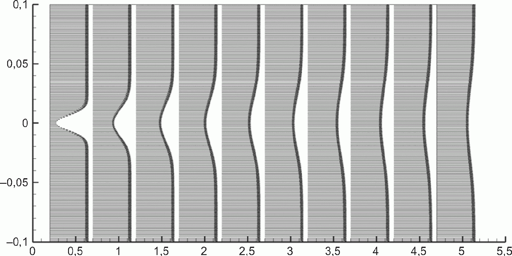 Рисунок 8 - Решение течения в плоском канале.
