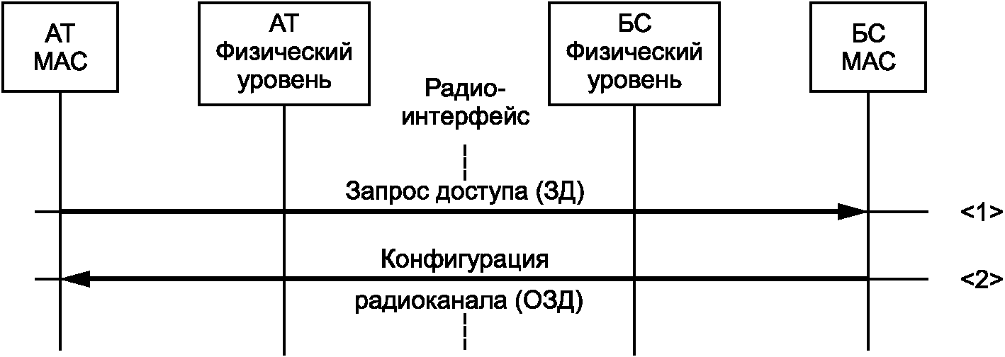 АТ | TЗД | Интервал времени, в течение которого АТ после передачи запроса доступа (ЗД) на БС ожидает ответного сигнала "Конфигурация радиоканала" | 3 кадра |