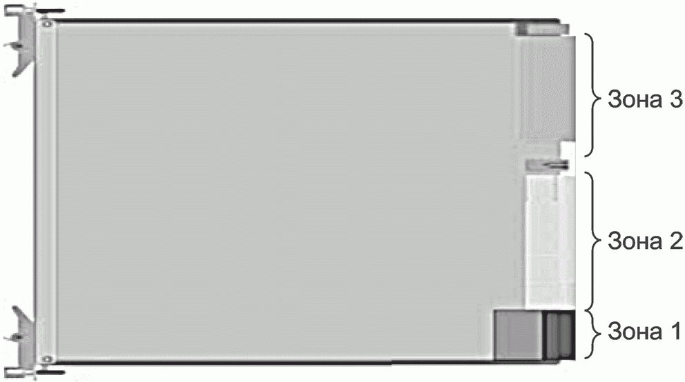 1 - фронтальная плата; 2 - зона 3; 3 - зона 2;