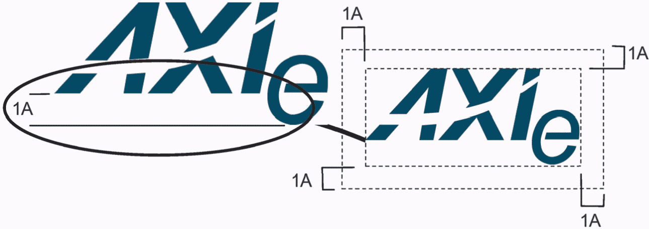 Свободное пространство - это область вокруг изображения, которая должна быть свободна от любого текста, графических элементов, рамок или других логотипов. Мера "1A" представляет собой свободное пространство вокруг логотипа и определяется расстоянием от нижней границы "A" до нижней границы "e", как показано на