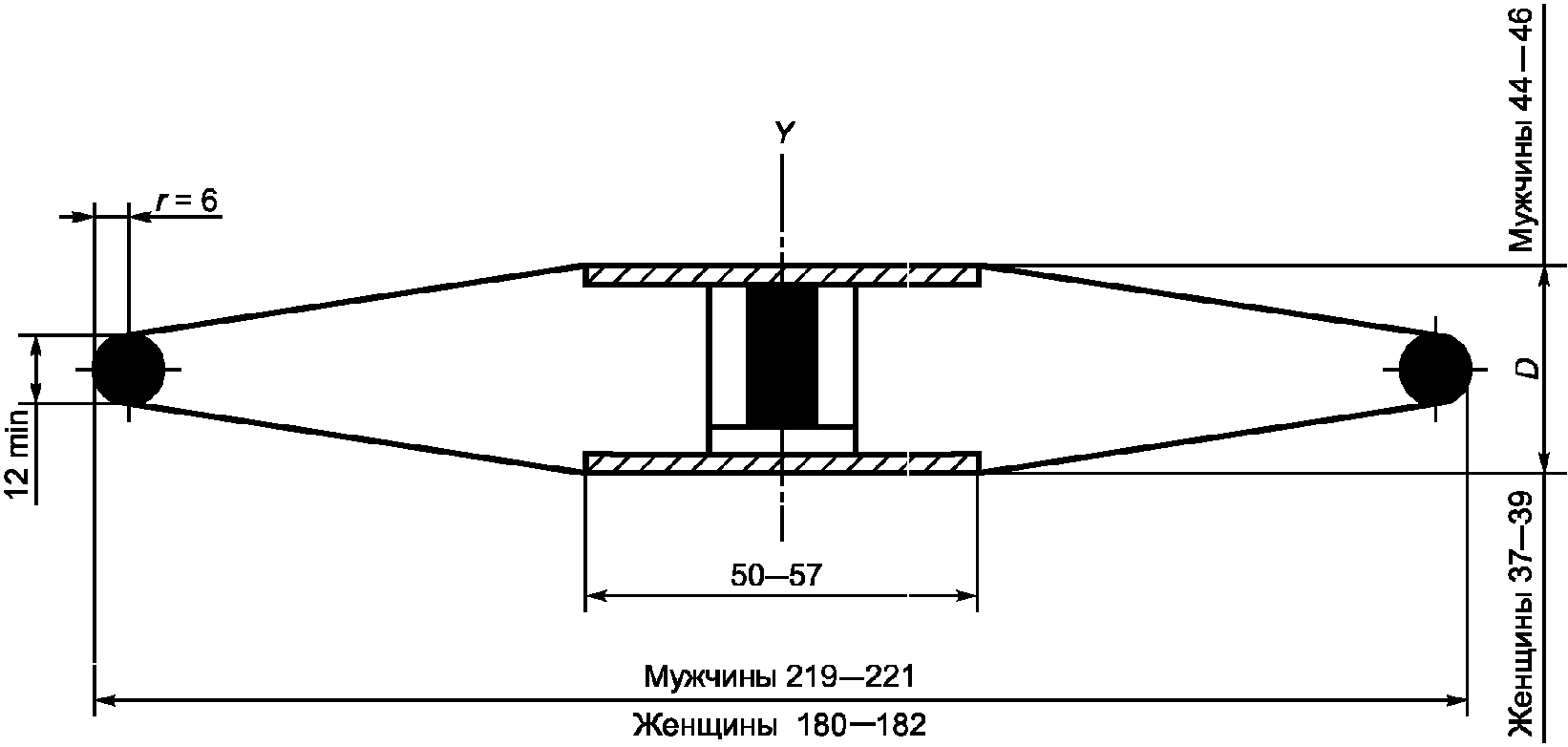 2.1.8 Диаметр металлического обода дисков массой 1 кг должен быть 180 - 182 мм, дисков массой 1,5 кг - 200 - 202 мм, дисков массой 1,75 кг - 210 - 212 мм, дисков массой 2 кг - 219 - 221 мм.