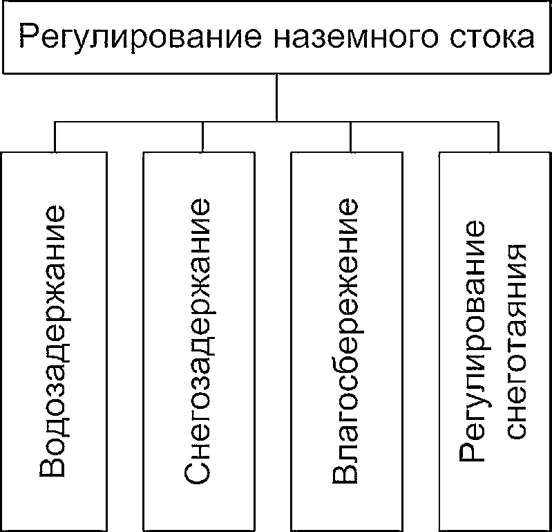 2.10 водозадержание: Мелиоративное мероприятие, реализуемое с целью уменьшения поверхностного стока, увеличения просачивания воды в почву путем производства работ почвозащитных фитопосадок и использования мелиоративной агротехники.