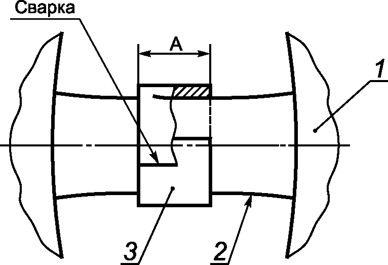 1 - звено якорной цепи; 2 - распорка звена; 3 - проволока