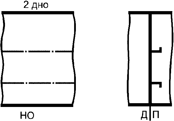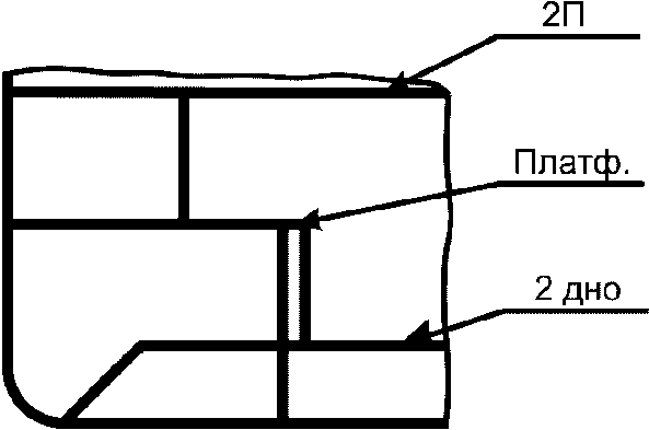 <*> Палубы, расположенные ниже второй, обозначают соответственно 3П, 4П и т.д. <**> При наличии нескольких ярусов надстройки палубы надстройки можно обозначать: П надстр. 1 яр.; П надстр. 2 яр. и т.д. <***> При наличии нескольких ярусов рубки палубы рубки можно обозначать: П руб. 1 яр.; П руб. 2 яр. и т.д. |