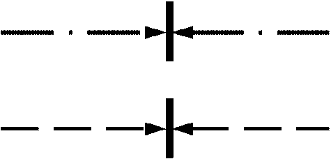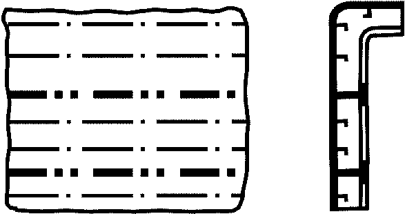 - открытые | Штрихпунктирной тонкой линией вдоль оси гофров по всей их длине и с нанесением сечения гофра (для вертикальных гофров показывают вид сверху, для горизонтальных - вид слева) толщиной от  до  | |