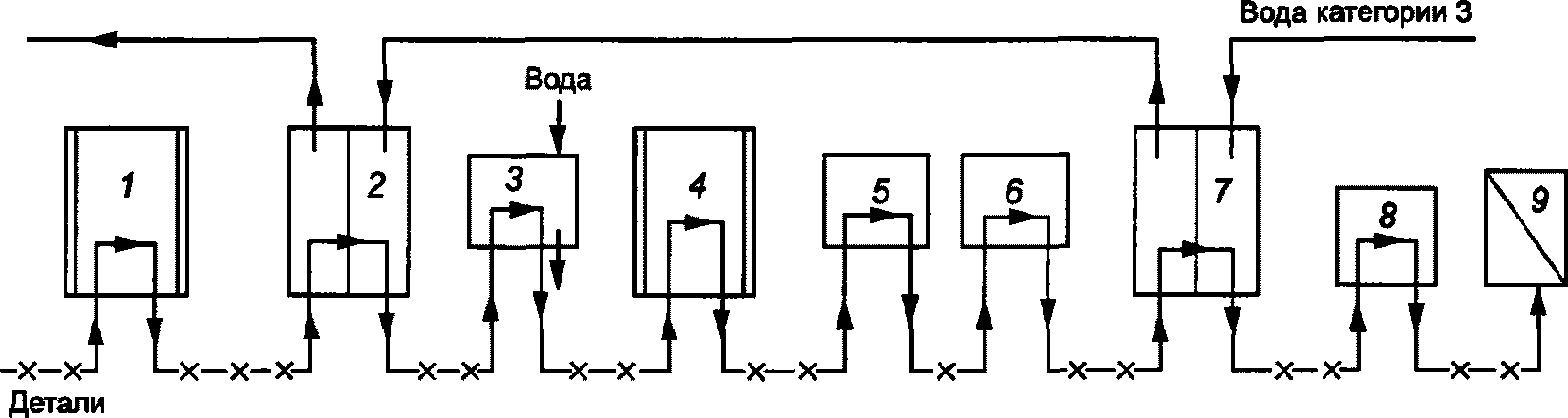 1 - ванна промывки водой категории 2; 2 - ванна финишной