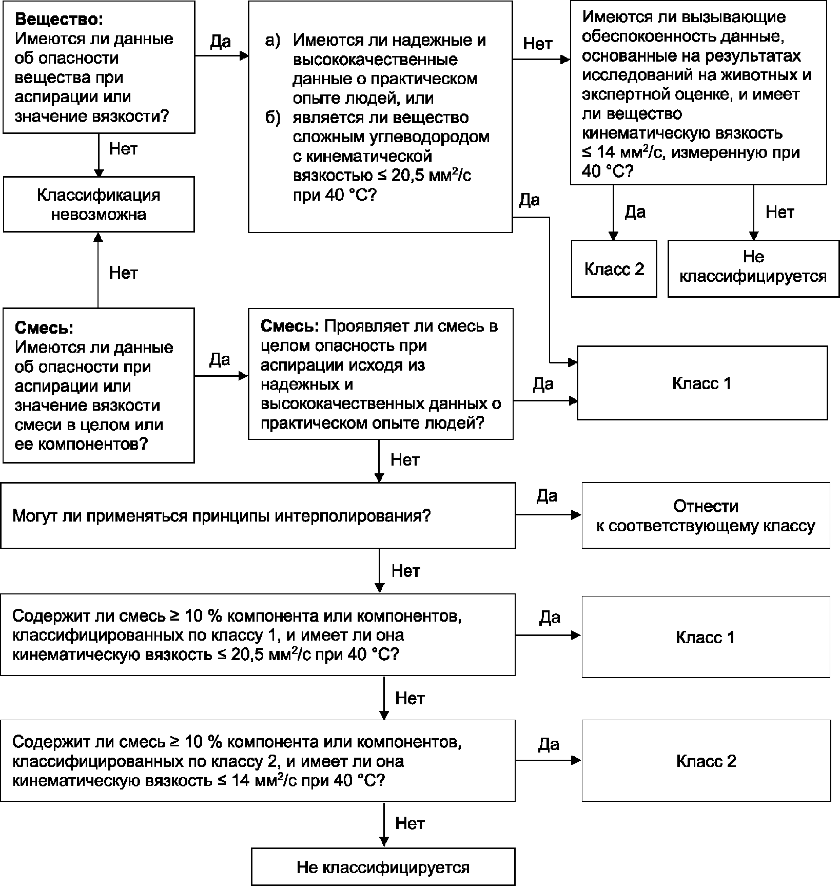 4.7 Схема принятия решения при классификации опасности химической продукции, обладающей опасностью при аспирации, приведена в