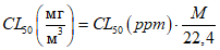 4.9 Для пересчета ориентировочных значений концентраций, указанных в объемных частях на миллион, в миллиграммы на кубический метр воздуха используют следующую формулу: