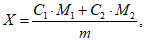 - среднеарифметическое значение результатов двух измерений массовой доли действующего вещества в пробе с известным количеством добавки, полученное в условиях повторяемости, %;
