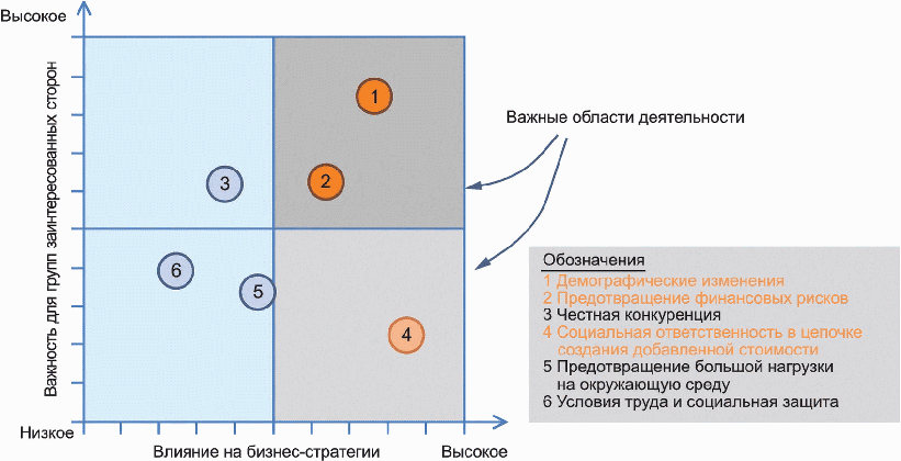 При анализе значимости проблем принимаются во внимание все наиболее важные вопросы устойчивости компании (которые были выявлены при анализе групп заинтересованных сторон). Проблемы оцениваются по степени важности для групп заинтересованных сторон и актуальности для бизнес-стратегии компании. Проблемы особой степени важности следует рассматривать и решать в первоочередном порядке, а остальные проблемы - далее, по приведенному на