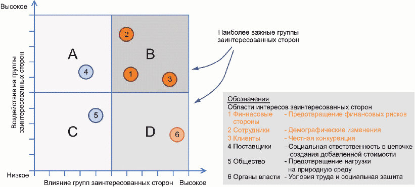 Следующий этап состоит в оценке влияния, оказываемого каждой группой заинтересованных сторон на компанию, и насколько влияет деятельность компании на эти группы.