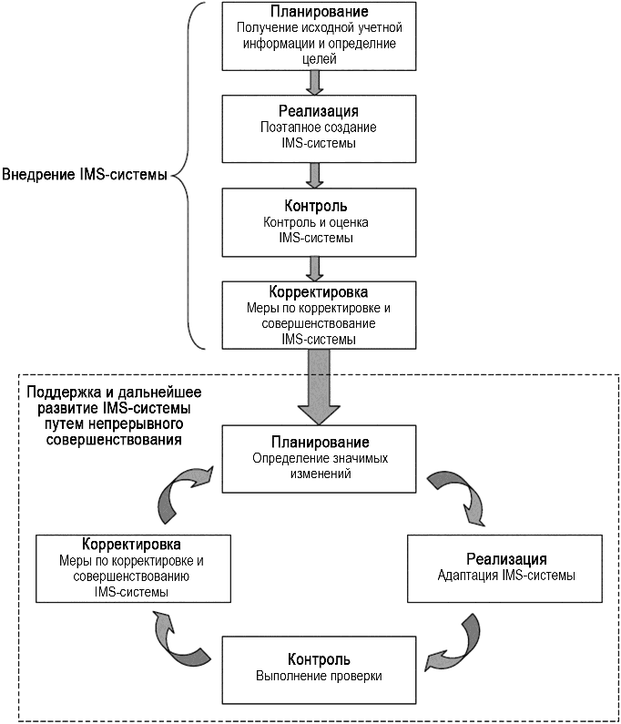 Первый этап внедрения IMS-системы предназначен для выявления существующих "слабых мест" и определения необходимого объема принимаемых мер. Разумеется, отдельные аспекты могут рассматриваться параллельно, например различными коллективами разработчиков.