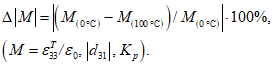 (~ 1200), достаточно высокие значения пьезомодуля, |