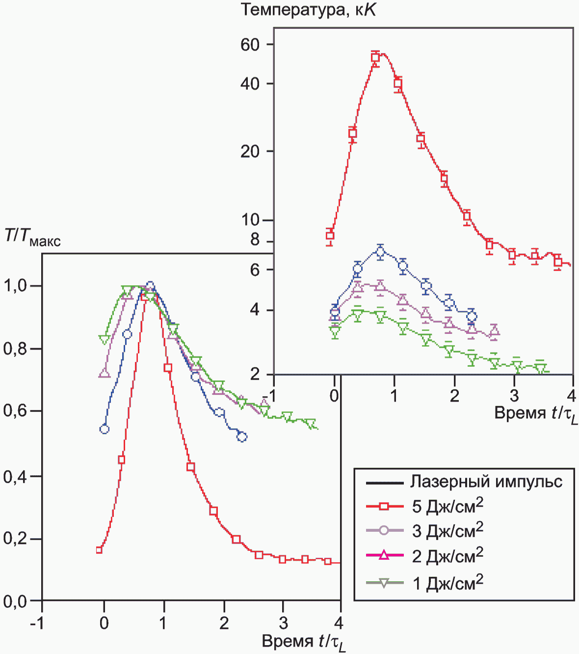 [5]), и для калибровки можно использовать маломощный импульсный лазер. При проведении эксперимента в реальных условиях максимальная температура калибровки не превысит величины ~ 10