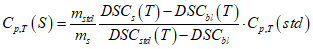 Измерение температурной зависимости удельной теплоемкости пьезокерамических материалов проводят на дифференциальном сканирующем калориметре ДСК 204.Ф1 немецкой фирмы NETZCH. Индивидуальные значения Cp при разных температурах определяют согласно следующему уравнению: