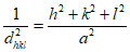 Квадратичная форма для кубической решетки, связывающая параметр решетки a и индексы Миллера h, k, l с межплоскостным расстоянием d, имеет вид