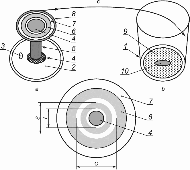 O - внешний диаметр; a - крышка в сборе; b - стакан;