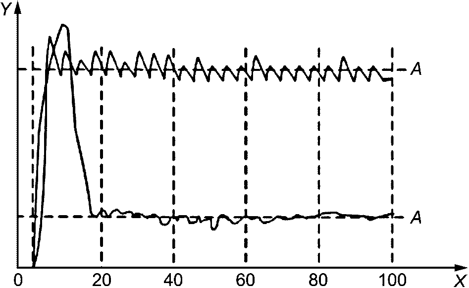 Y - сила отрыва, Н/см; X - величина отрыва, %; A - среднее