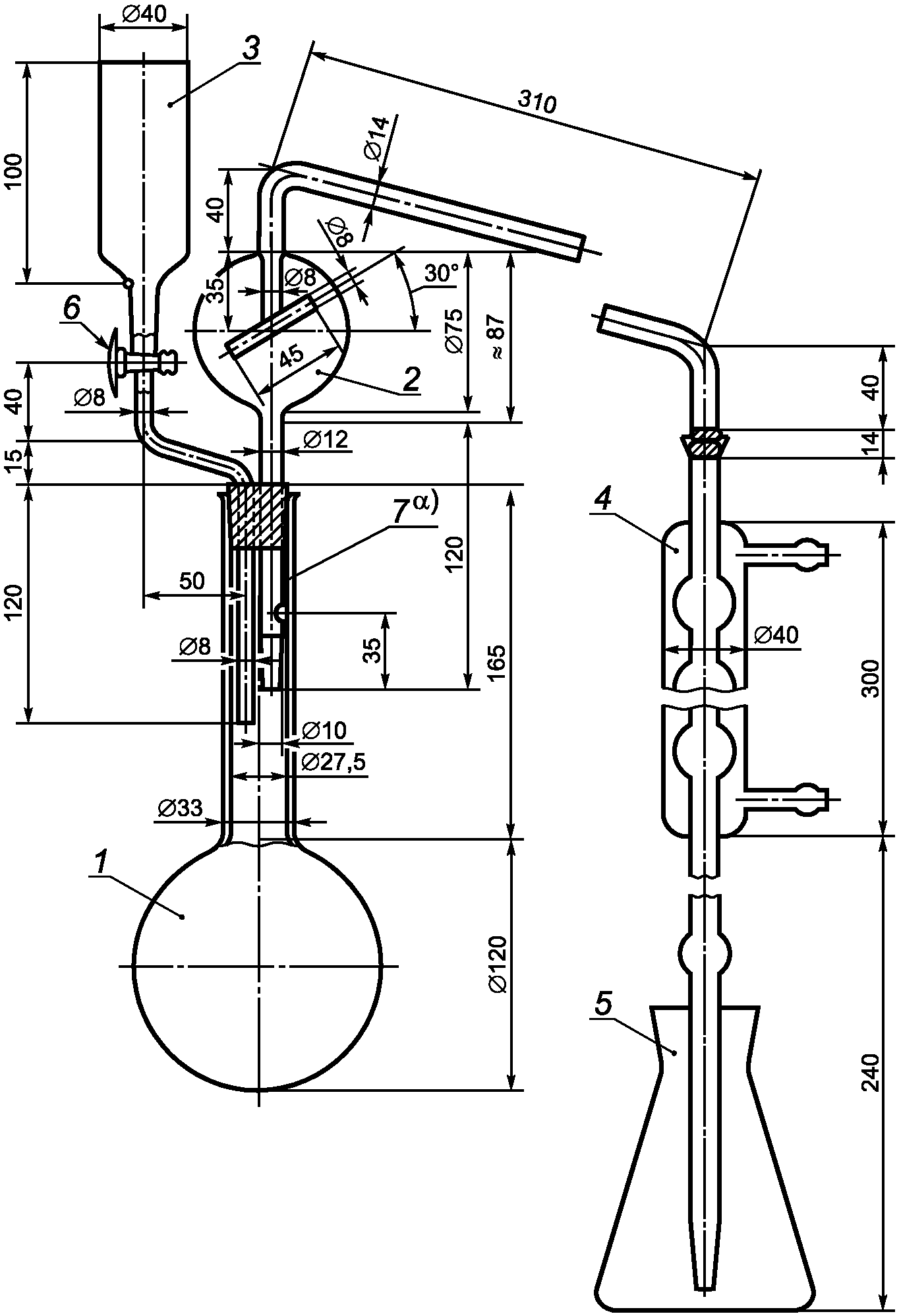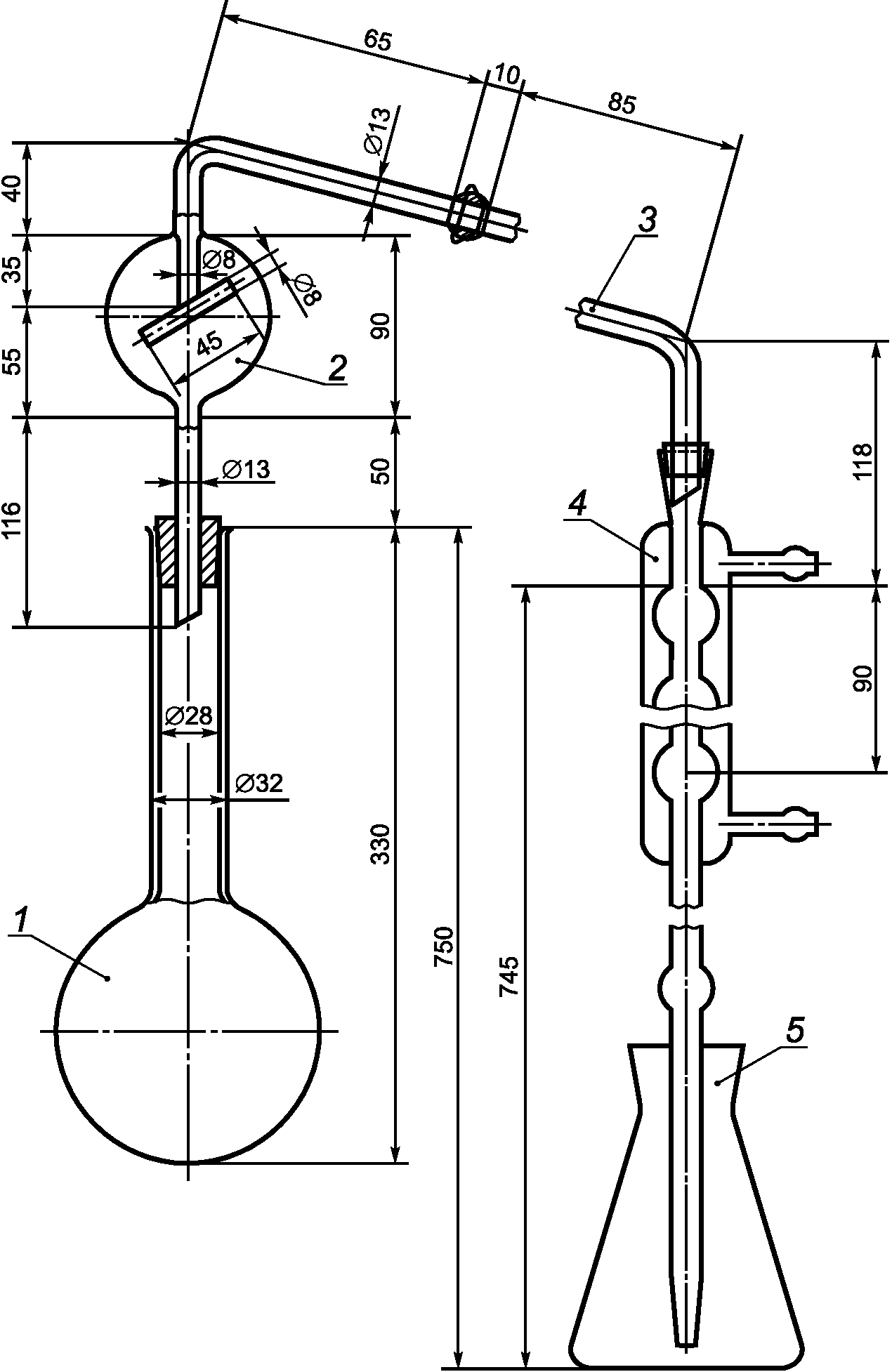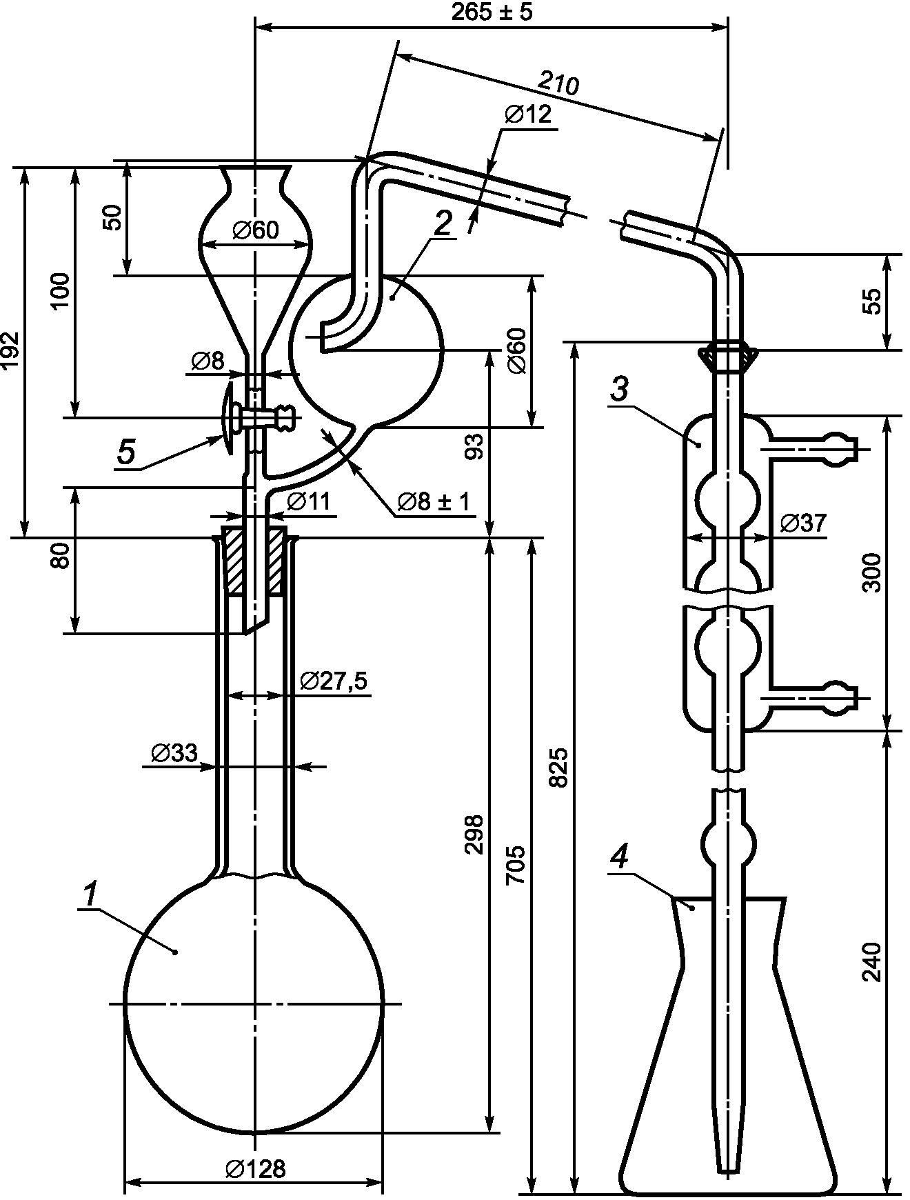 Во избежание потерь аммиака в ходе уреазного разложения колбу Эрленмейера закрывают пробкой, снабженной делительной воронкой и небольшим поглощающим фильтром в виде пузырька, наполненного ровно 2 см