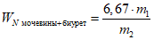 Массовую долю содержания азота мочевины во взятом для анализа удобрении WN (мочевины + биурет), %, вычисляют по формуле