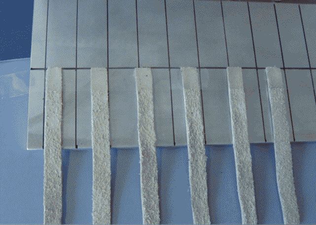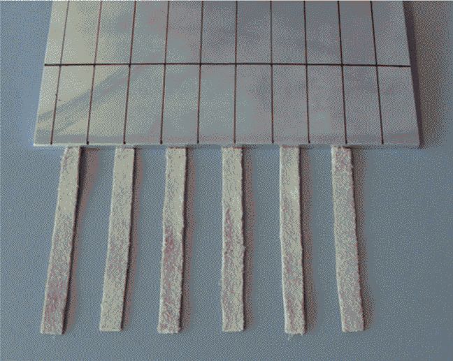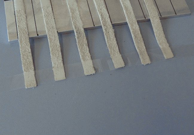 Закрепляют еще одну длинную клейкую ленту вдоль противоположных концов образцов и плотно прижимают ее к образцам