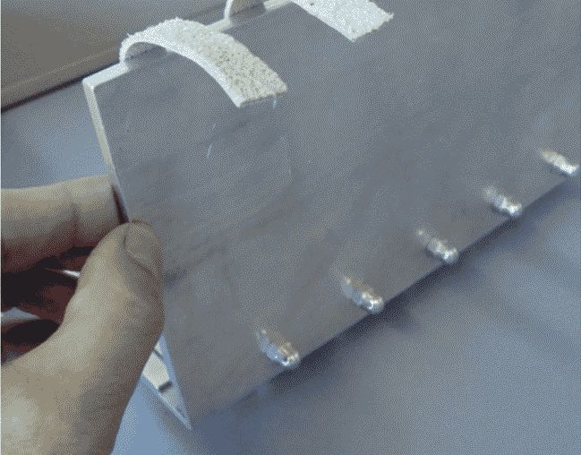 Закрепляют конец липкой ленты на задней стороне держателя