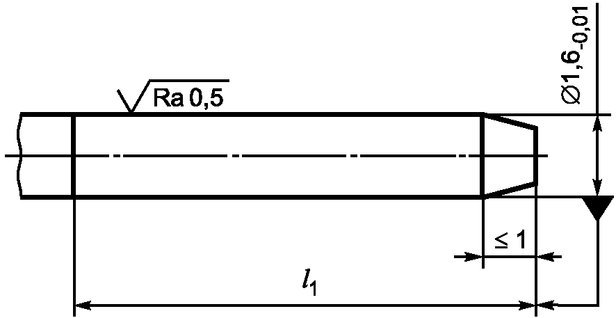 Диаметр хвостовика d1 должен быть измерен путем перемещения по длине l1.