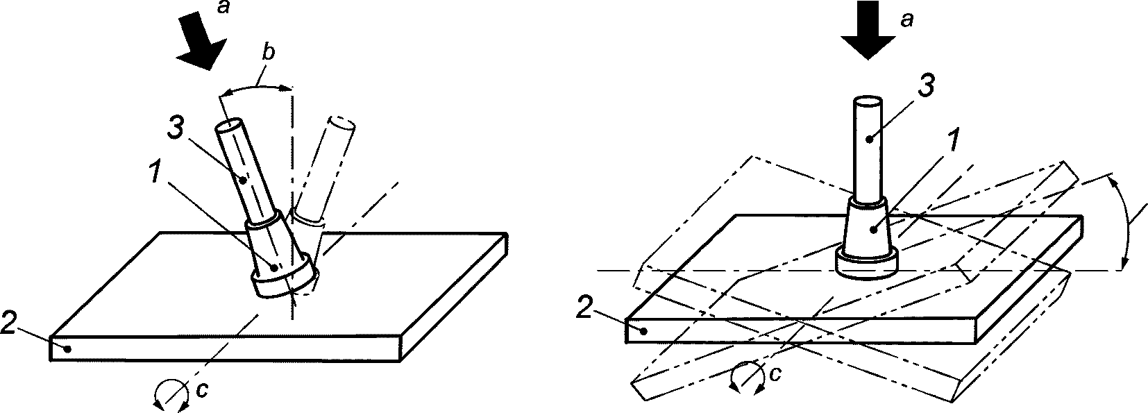 рисунке 2 показаны испытательная дорожка и нагружающий стержень. Механизм, управляющий движением, и механизм силовой нагрузки взаимодействуют во время испытания. Если нагружающий стержень с наконечником находится в вертикальном положении перпендикулярно испытательной дорожке, то силовая нагрузка на наконечник максимальна. Испытательная аппаратура (включая датчик нагрузки) должна быть жесткой.