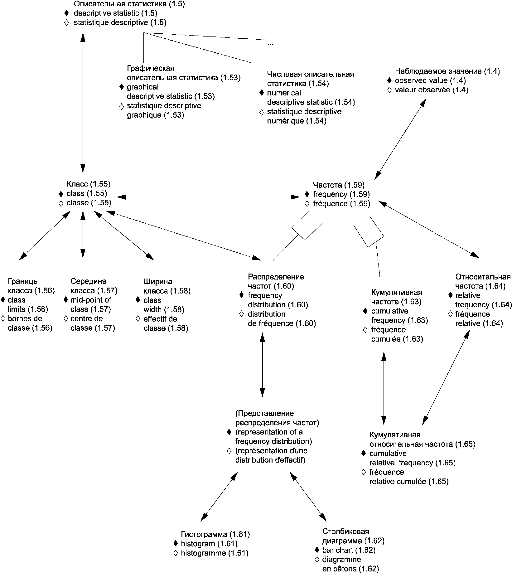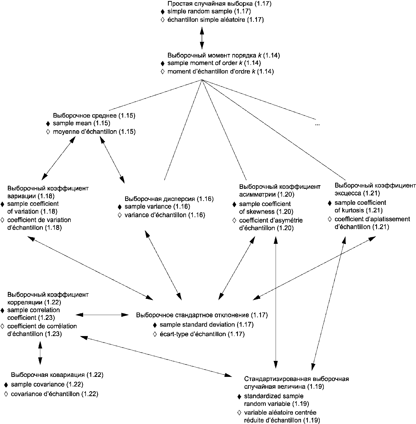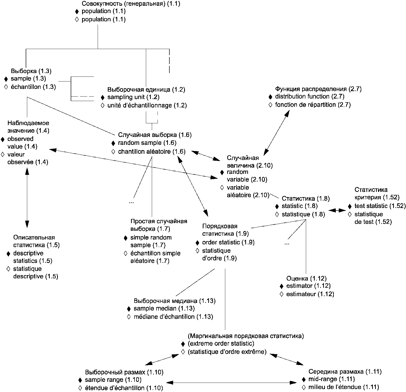 1.5 описательная статистика: Краткое представление наблюдаемых значений (1.4) в графическом, численном или ином виде. Пример 1 - Численные сводки включают выборочное среднее (1.15), выборочный размах (1.10), выборочное стандартное отклонение (1.17) и т.д. Пример 2 - Примеры графических представлений включают "ящики с усами", диаграммы, графики "квантиль - квантиль", графики нормального квантиля, диаграммы рассеяния, множественные диаграммы рассеяния и гистограммы. | en | descriptive statistics | ||||||||||||||
