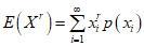 1.14 выборочный момент порядка k; E(Xk): Сумма k-х степеней случайных величин (2.10) случайной выборки (1.6), деленная на число наблюдений в выборке (1.3). Примечание 1 - Для случайной выборки объема n, т.е. для {X1, X2, ..., Xn}, выборочный момент порядка k, E(Xk) - это .Примечание 2 - Кроме того, данное понятие можно характеризовать как начальный выборочный момент порядка k. Примечание 3 - Выборочный момент порядка 1, представленный в следующем определении, является выборочным средним (1.15). Примечание 4 - Хотя определение дано для произвольного k, на практике, как правило, рассматривают следующие значения k: k = 1 [выборочное среднее (1.15)], k = 2 [связано с выборочной дисперсией (1.16) и выборочным стандартным отклонением (1.17)], k = 3 [связано с выборочным коэффициентом асимметрии (1.20)] и k = 4 [связано с выборочным коэффициентом эксцесса (1.21)]. Примечание 5 - Использование буквы "E" в записи E(Xk) связано с тем, что с этой буквы начинается английская запись понятий "ожидаемое значение" ("expected value") и "ожидание" ("expectation"). | en | sample moment of order k | ||||||||||||||
