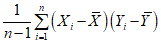 Выборочное среднее для X составляет 46,1, а для Y составляет 75,4. Соответствующая выборочная ковариация равна: [(38 - 46,1)·(73 - 75,4) + (41 - 46,1)·(74 - 75,4) + ... + (33 - 46,1)·(48 - 75,4)]/9 = 257,178. | ||||||||||||||||