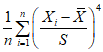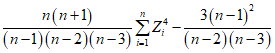 1.20 выборочный коэффициент асимметрии: Среднее арифметическое стандартизованных выборочных случайных величин (1.19) случайной выборки (1.6) в третьей степени. Пример - Для примера, приведенного в 1.9, получен выборочный коэффициент асимметрии 0,97188. Для такого объема выборки (n = 10) выборочный коэффициент асимметрии имеет высокую изменчивость, поэтому требует осторожности при использовании. Применение альтернативной формулы, представленной в примечании 1, дает значение 1,34983. .Некоторые программы статистической обработки данных с целью корректировки смещения (1.33) используют для вычисления выборочного коэффициента асимметрии следующую формулу: ,где .При больших объемах выборок разность значений этих двух оценок пренебрежимо мала. Отношение несмещенной оценки к смещенной для n = 10 составляет 1,389, для n = 100 - 1,031 и для n = 1000. | en | sample coefficient of skewness | ||||||||||||||