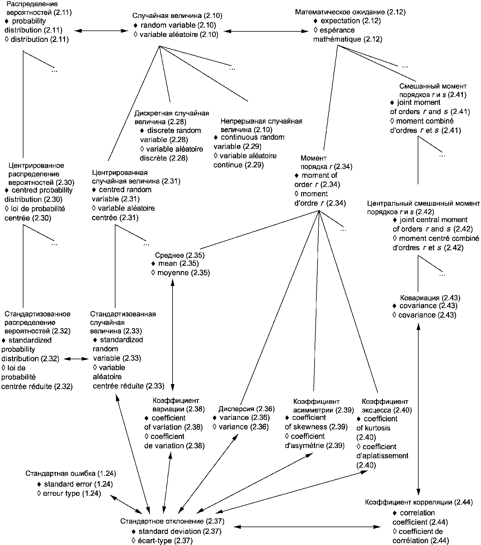 1.19 стандартизованная выборочная случайная величина: Разность случайной величины (2.10) и ее выборочного среднего (1.15), деленная на выборочное стандартное отклонение (1.17). Пример - Для примера, приведенного в 1.9, полученное выборочное среднее составляет 9,7, а полученное выборочное стандартное отклонение - 4,192; таким образом, полученные значения стандартизованной выборки составляют: -0,17; 0,79; -0,64; -0,88; 0,79; -0,64; 2,22; -0,88; 0,07; -0,64. Примечание 1 - Стандартизованную выборочную случайную величину следует отличать от ее теоретического аналога - стандартизованной случайной величины (2.33). Целью стандартизации случайной величины является ее преобразование в случайную величину с нулевым математическим ожиданием и стандартным отклонением, равным единице; данное преобразование проводят для простоты интерпретации и сравнения данных. Примечание 2 - Стандартизованные наблюдаемые значения имеют нулевое наблюдаемое среднее и наблюдаемое стандартное отклонение, равное единице. | en | standardized sample random variable | ||||||||||||||