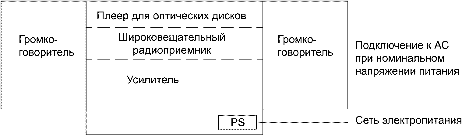 3.1.4 компактные аудиосистемы, включая громкоговорители (compact audio systems including loudspeakers): Усилитель и один или несколько аудиоисточников в едином корпусе, которые также могут включать громкоговорители.