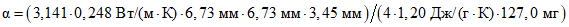 4.1.3 Получаемые таким образом значения теплоемкости меньше, чем в случае равномерного распределения температуры, и пропорциональны квадратному корню из коэффициента теплопроводности образца. Коэффициент теплопроводности образца может быть получен из значений теплоемкости, измеренной для толстого образца, действительной теплоемкости тонкого образца и серии геометрических и экспериментальных констант.