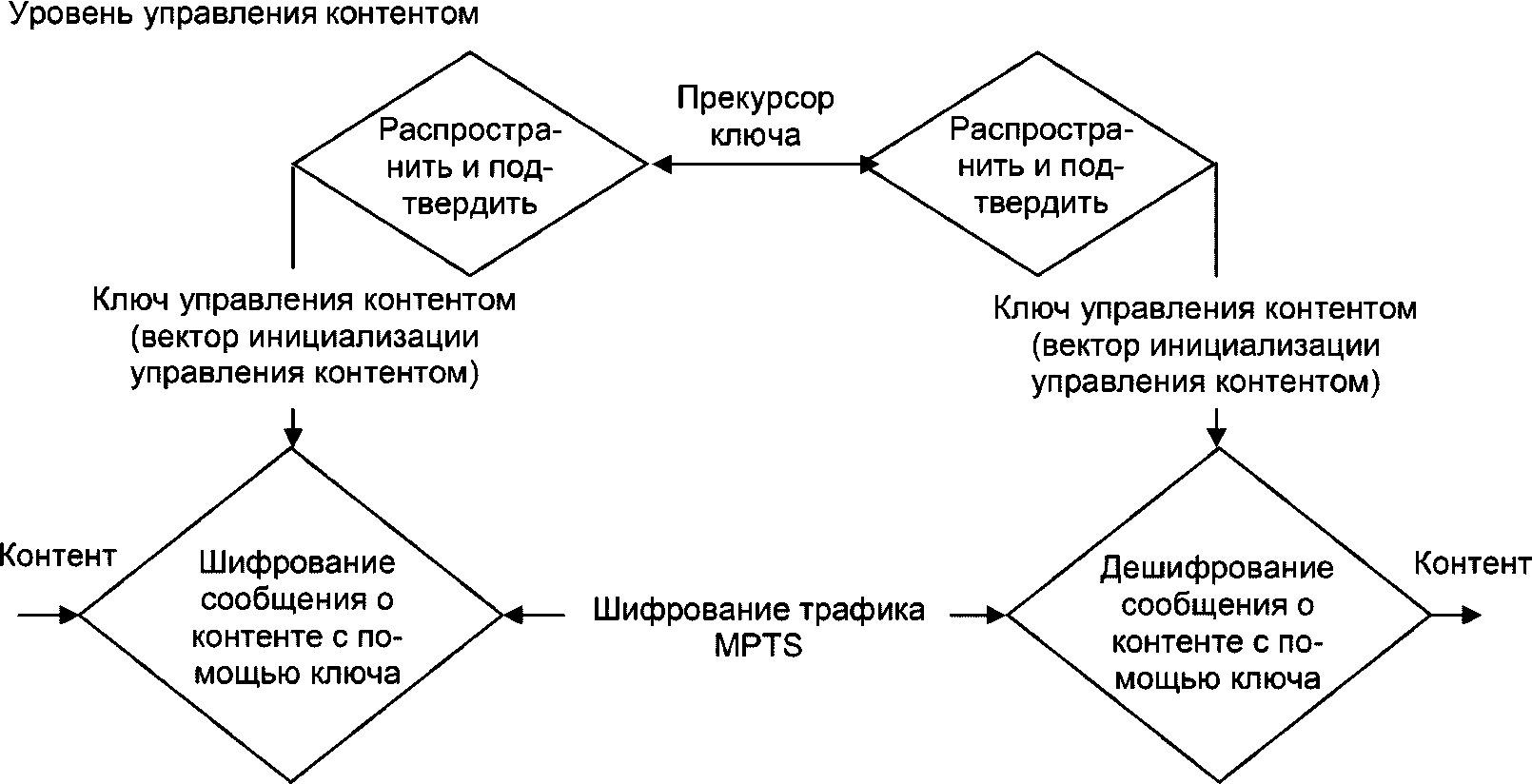 рисунке 5 представлена схема процесса формирования ключей уровня управления контентом.