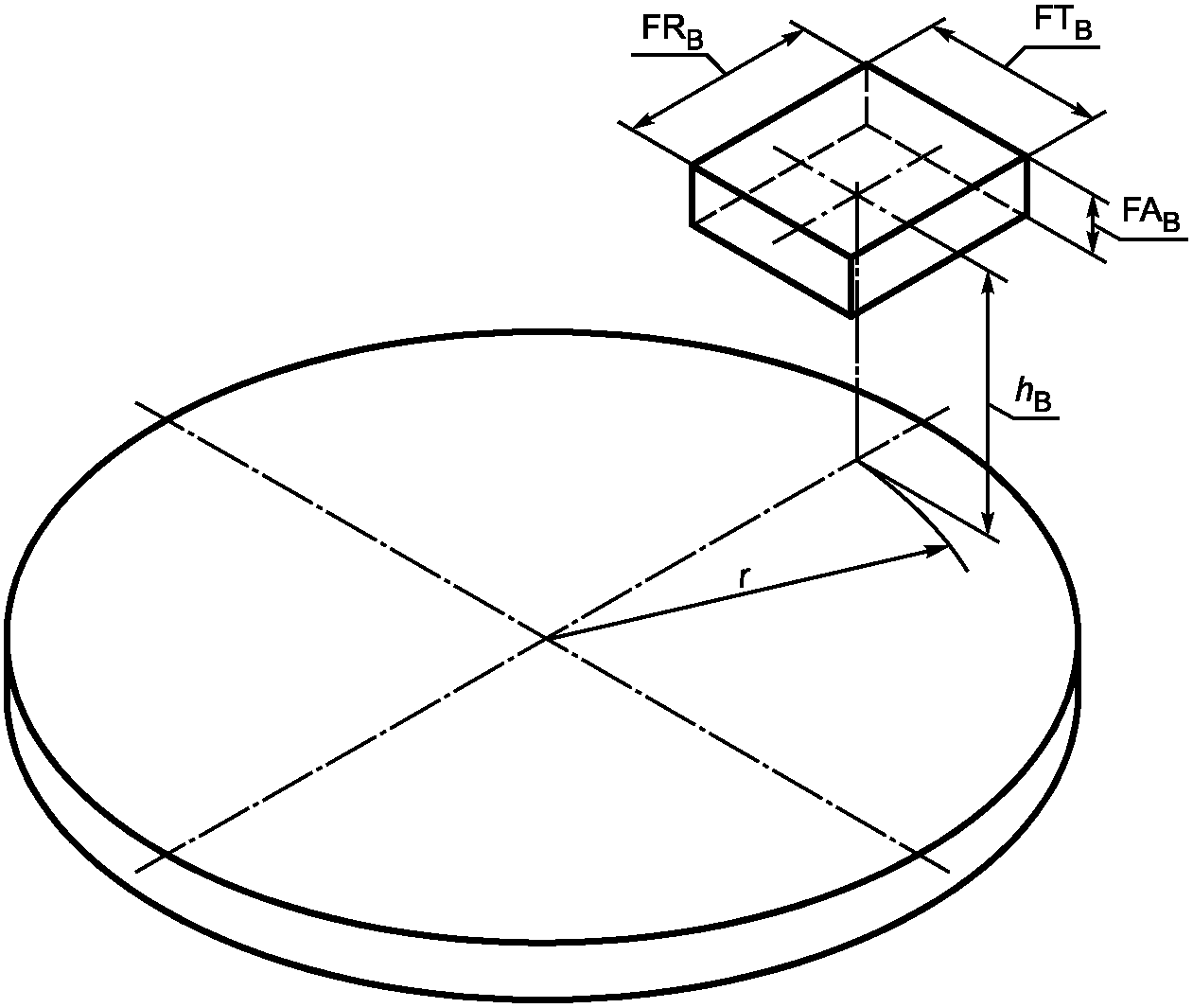 Примечание 1 - r - расстояние от центра поверочной сферы B до оси поворотного стола.