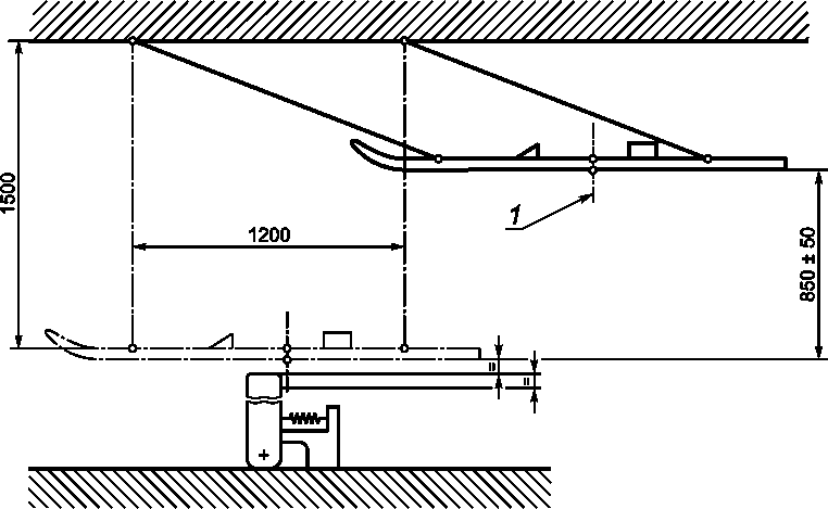Лыжу необходимо поднять на высоту 850 +/- 50 мм и отпустить ее в направлении ударного блока.