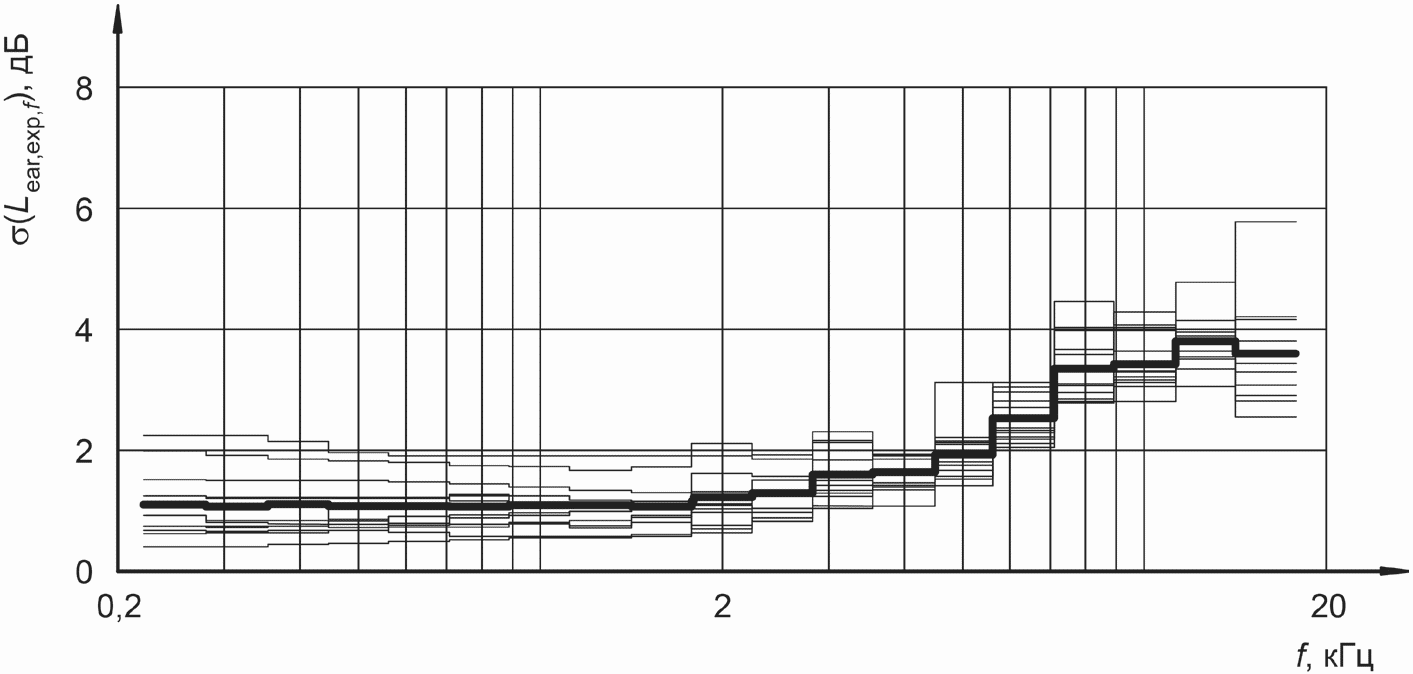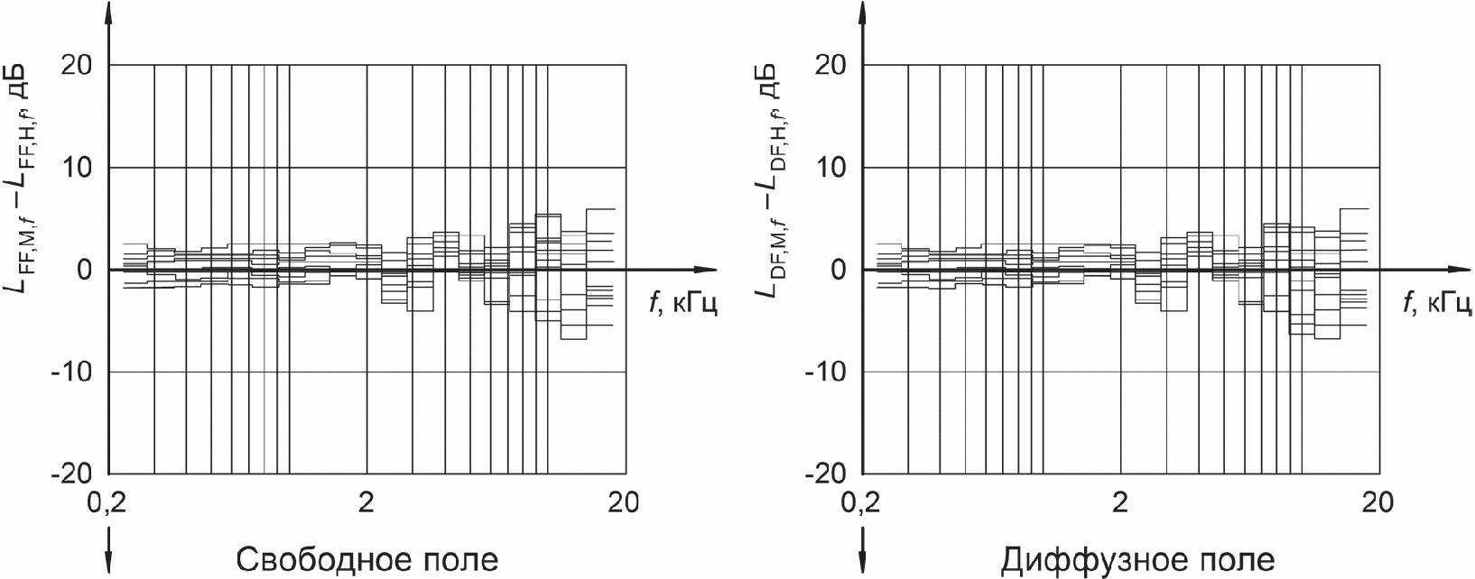 Для частот вплоть до 5 кГц, типичное отклонение LFF,f не превышает 2,5 дБ и составляет не более 2 дБ для LDF,f. Тем не менее, некоторые комбинации наушников и манекенов могут давать большие отклонения, в частности для определенных третьоктавных полос частот.