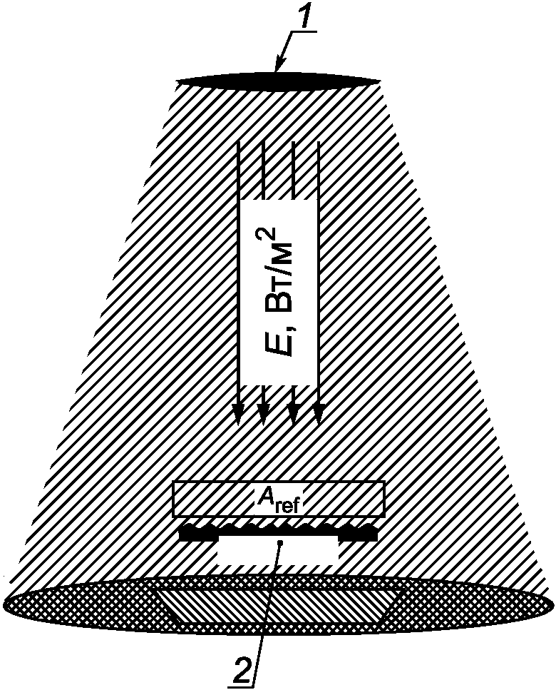где Iref - интенсивность излучения в установленном направлении, исходящая от отражателя, измеренная на уровне мишени испытаний [Вт/ср];
