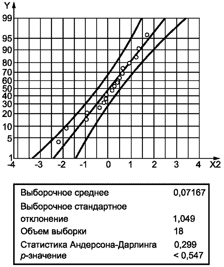 4.3.4.2 и с последующей проверкой соответствия преобразованных данных графику нормального распределения на вероятностной бумаге;